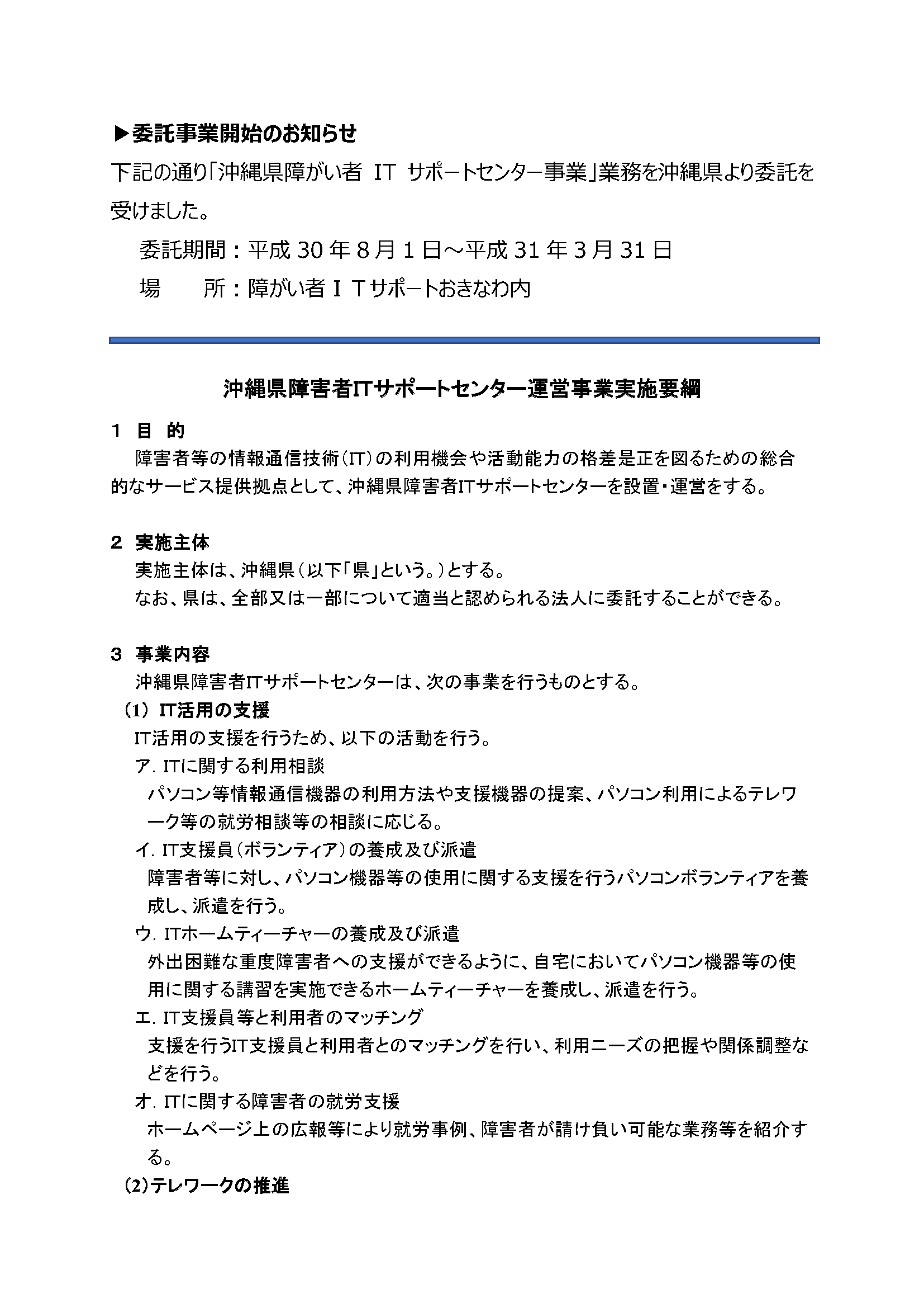 沖縄県障害者ITサポートセンター運営事業の実施要項(別ウィンドウでPDFが開きます)
